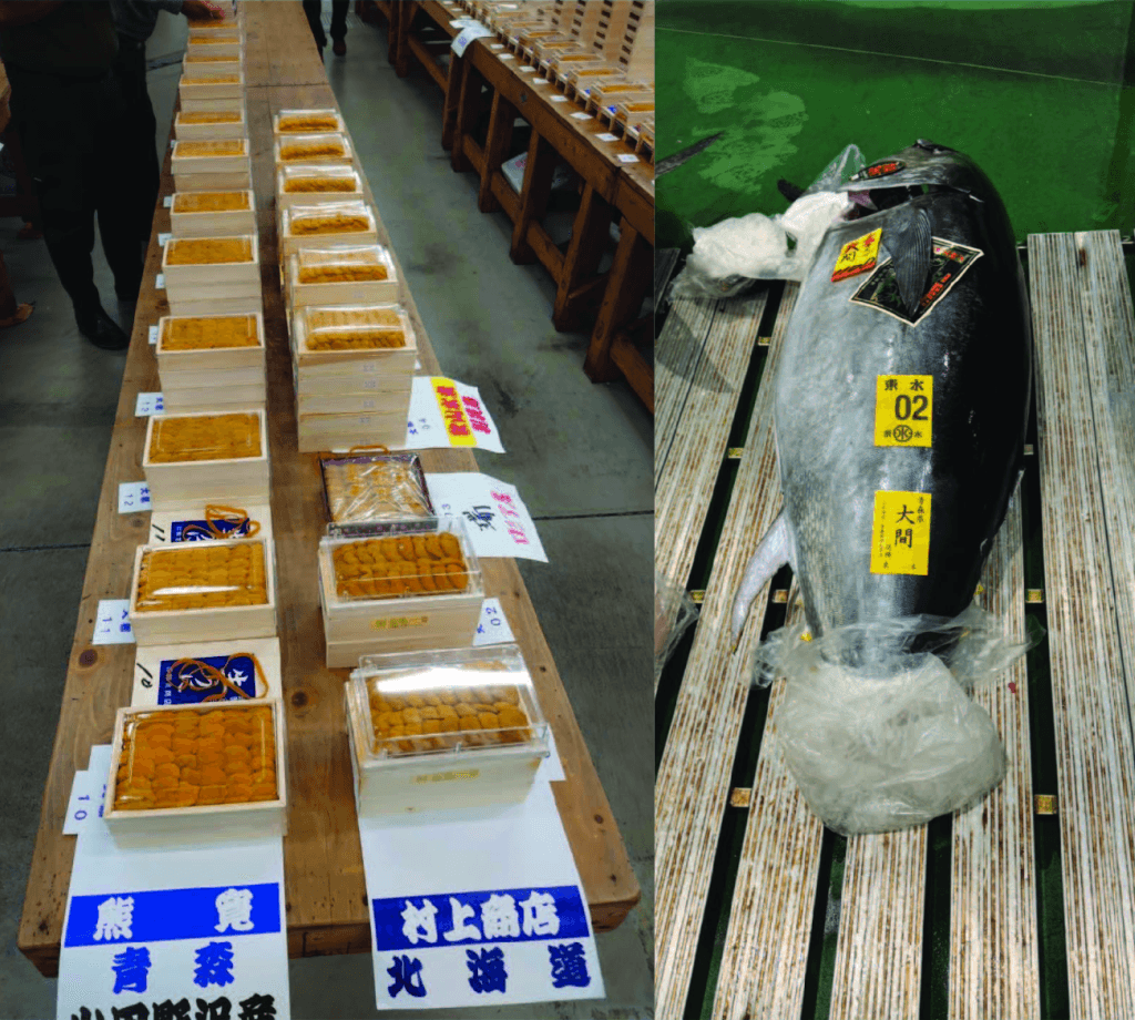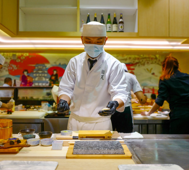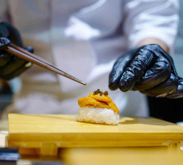 Collaborating with Mr.Nobuaki-San at the seafood market is another shining star in our ingredient supply chain. At the dawn of Toyosu Fish Market, the bustling sounds of people fill the air, creating a lively atmosphere. As the leading buyer at Toyosu Fish Market, Mr. Nobuaki-San ensures that we obtain the freshest and finest seafood of the day with his keen eye and stringent selection criteria. From sea urchins, tuna, to various exotic fish species, every piece of seafood undergoes meticulous handling by local Japanese craftsmen, guaranteeing hygiene and quality.